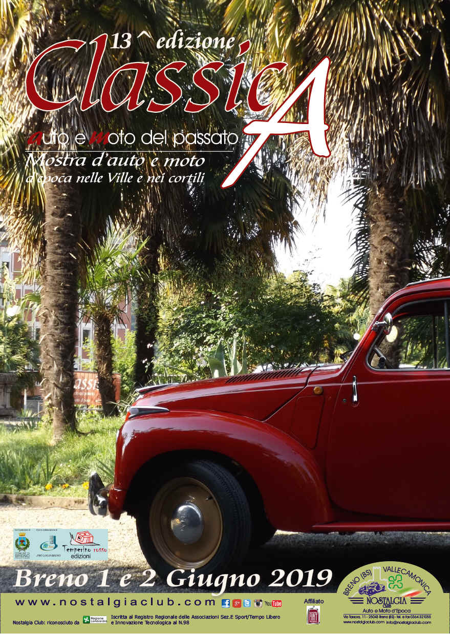 La tematica dell'edizione 2019 di Classica sarà principalmente focalizzata sul Marchio Fiat.